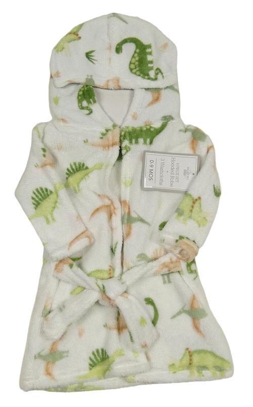 Nové - Biely chlpatý župan s dinosaurami a kapucňou