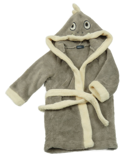 Sivo-smotanový chlpatý župan s kapucí - dino