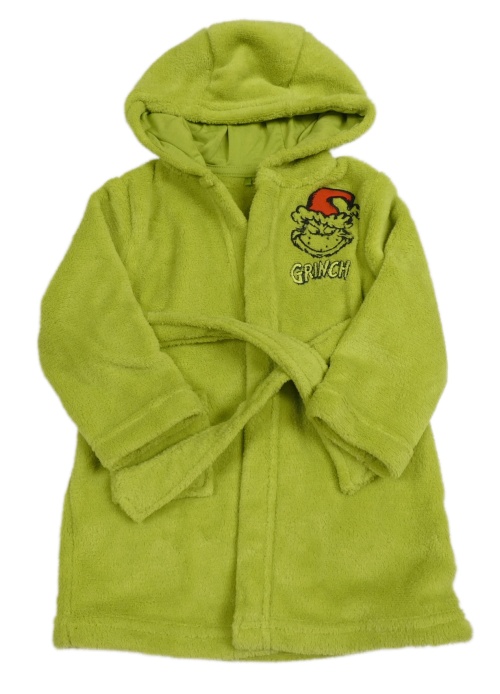 Zelený chlpatý župan s Grinchem a kapucňou