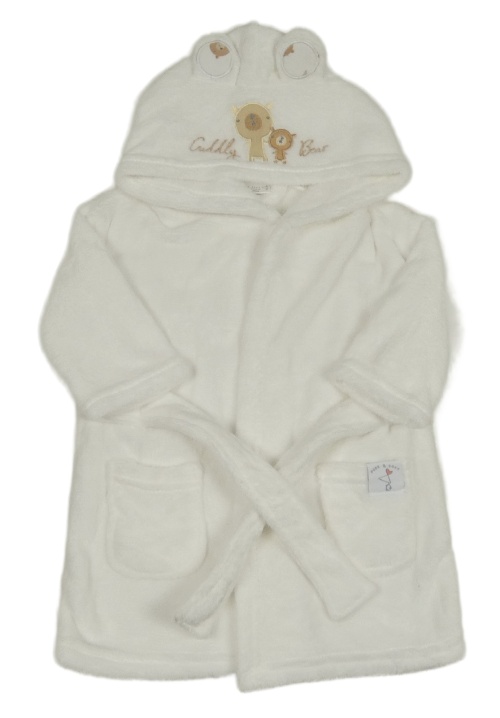 Biely chlpatý župan s kapucňou s medvedíkmi