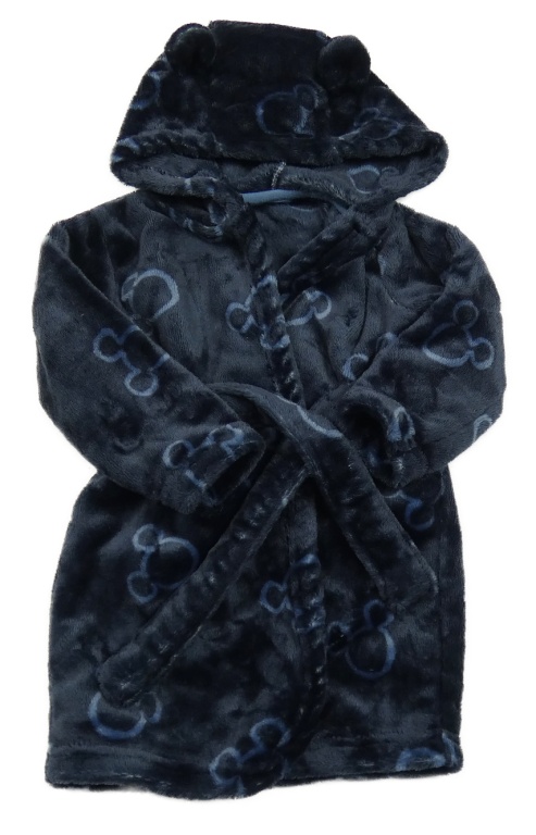 Tmavomodrý chlpatý župan s Mickey mousem a kapucňou George