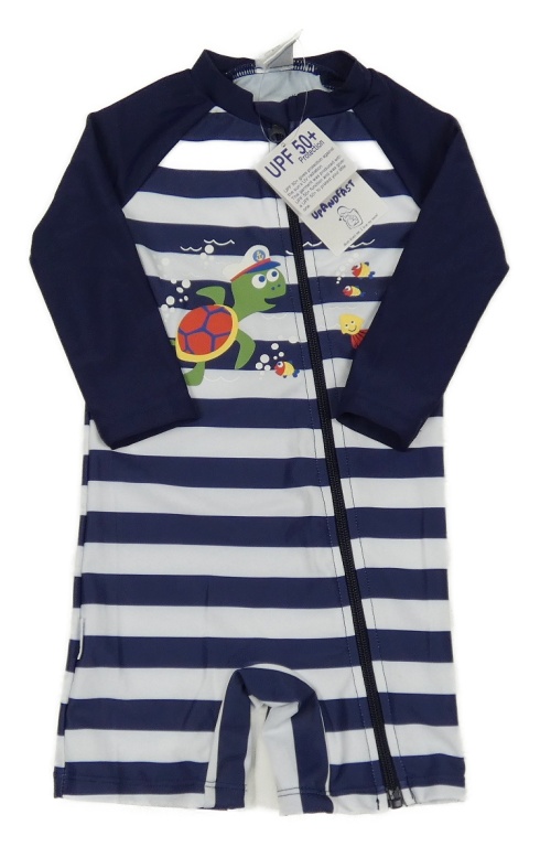 Nové - Tmavomodro-biely pruhovaný UV overal s korytnačkou