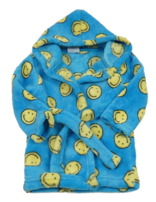 Tyrkysový chlpatý župan so smajlíkmi