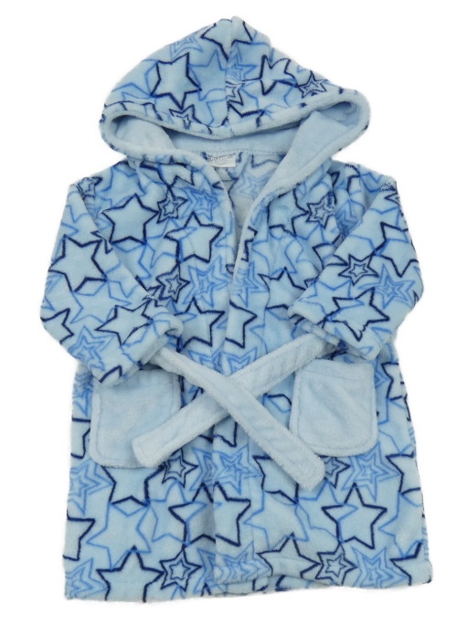 Svetlomodrý plyšový župan s hviezdičkami a kapucňou BABYTOWN