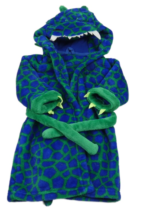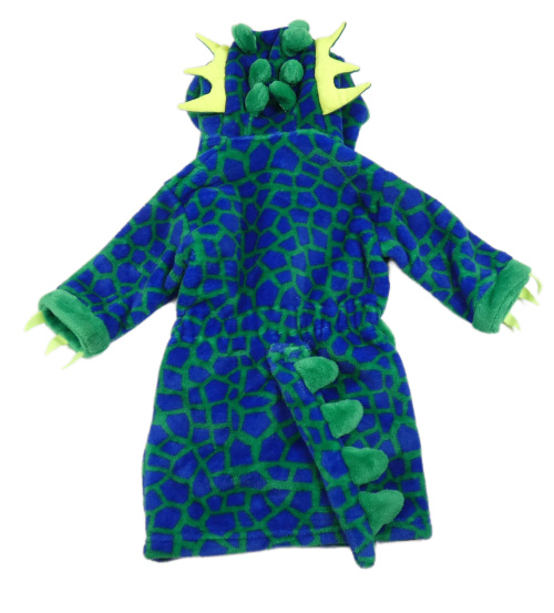 Modro-zelený vzorovaný plyšový župan s kapucňou a ocasem - dino M&S