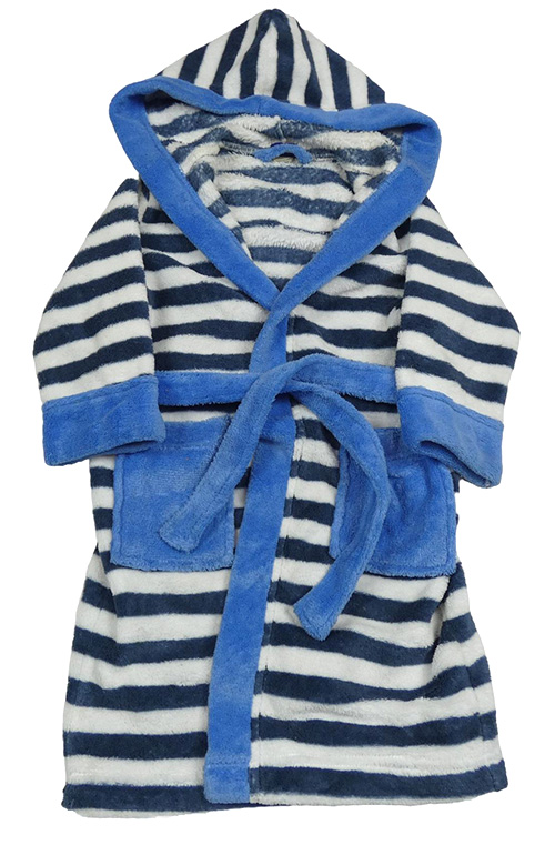 Tmavomodro-biely pruhovaný chlpatý župan s kapucňou Lupilu