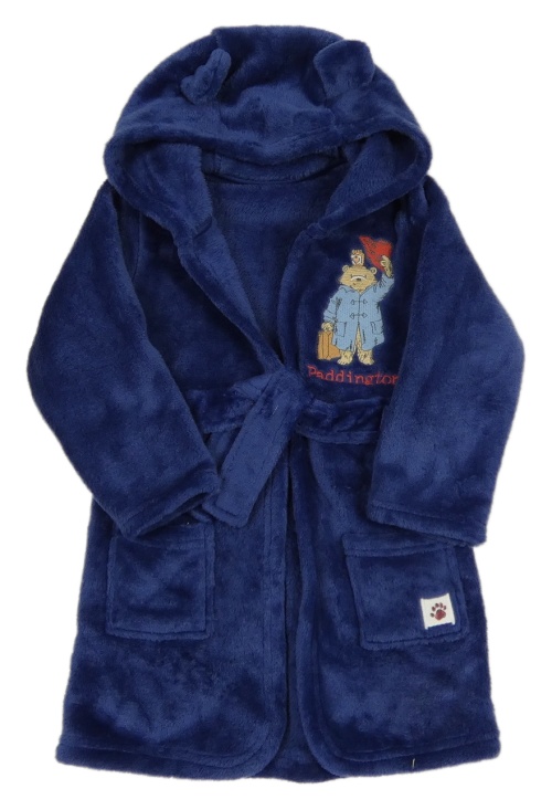 Tmavomodrý chlpatý župan s Paddingtonem a kapucňou