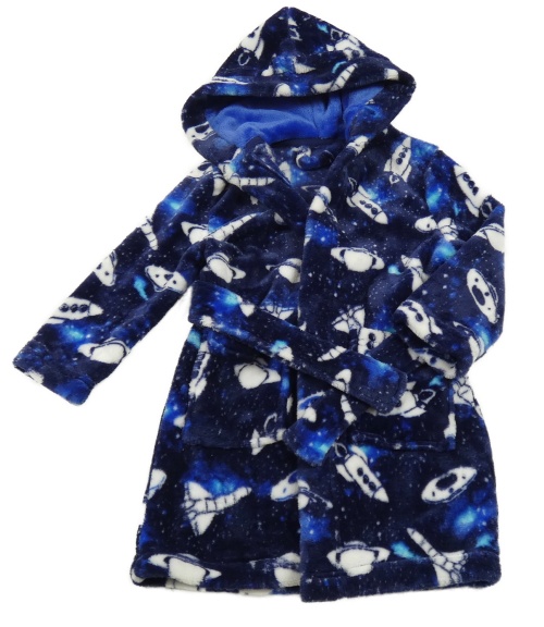 Tmavomodrý plyšový župan s vesmírom a kapucňou St. Bernard