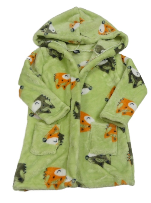 Zelený chlpatý župan so zvieratkami a kapucňou Shein