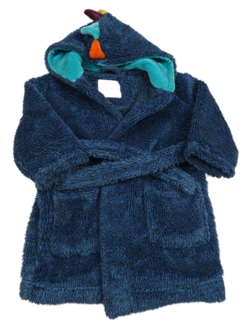 Tmavomodro-modrý melírovaný chlpatý župan s kapucňou a ostny Next