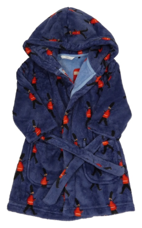 Tmavomodrý chlpatý župan s vojáky a kapucňou M&S