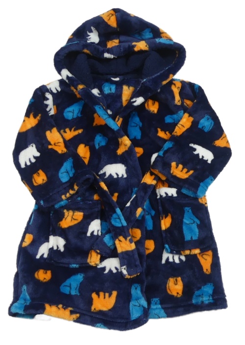 Tmavomodrý chlpatý župan s medveďmi a kapucňou