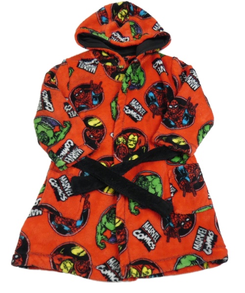 Červený chluatý župan s Avengers a kapucňou George