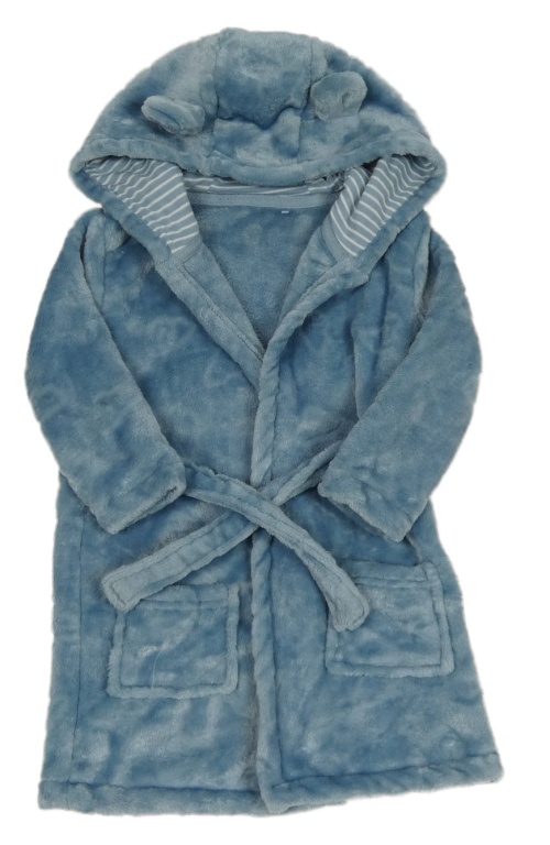 Modrošedý chlpatý župan s mraky a kapucňou Tu