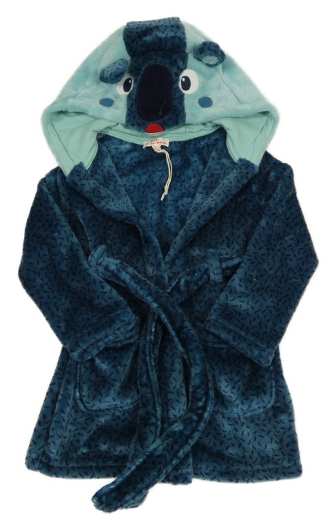 Tmavomodrý vzorovaný chlpatý župan s kapucí - vlk