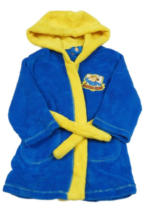 Modro-žltý chlpatý župan s Hasičem Samem a kapucňou