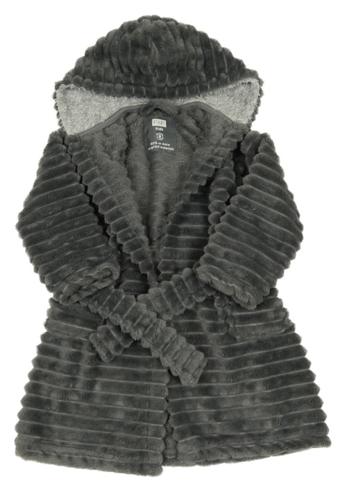 Tmavosivý rebrovaný plyšový župan s kapucňou F&F