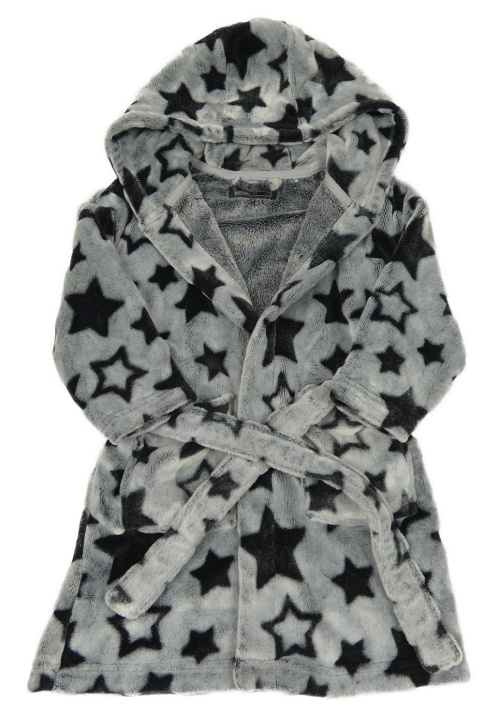 Svetlošedá -čierny plyšový župan s hviezdičkami a kapucňou Next