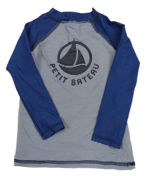 Tmavomodro-biele pruhované UV tričko s lodí a logom PETIT BATEAU
