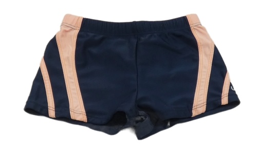 Tmavomodré nohavičkové plavky s ružovymi pruhmi
