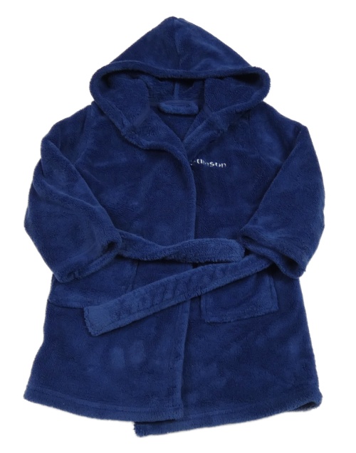 Tmavomodrý plyšový župan s kapucňou