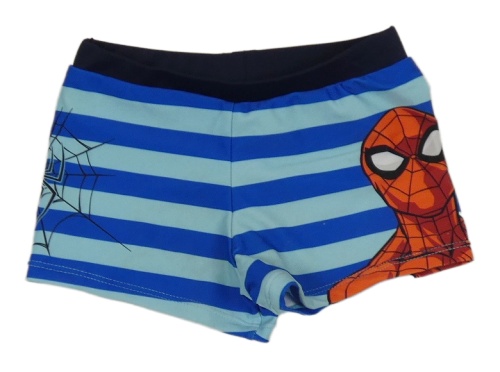Modro-svetlomodré pruhované nohavičkové plavky so Spider-manem