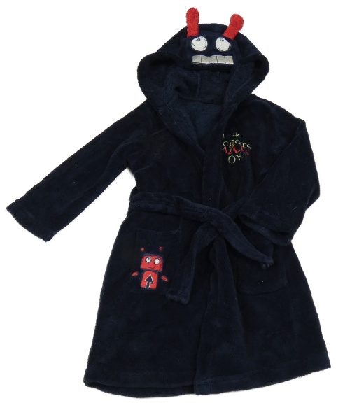 Tmavomodrý chlpatý župan s kapucí - príšerka