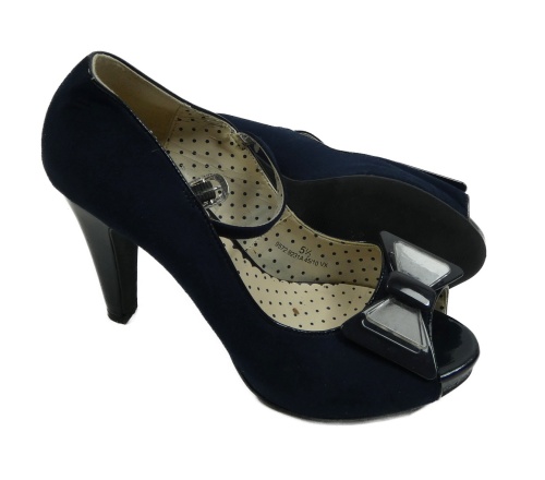 • Dámské tmavomodré semišové lodičky s otevřenou špičkou a podpatku vel. 38
