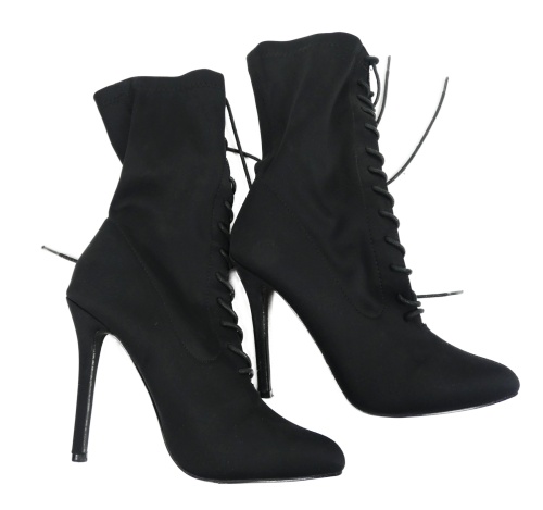Dámské černé šněrovací polokozačky na jehlovém podpatku vel. 38