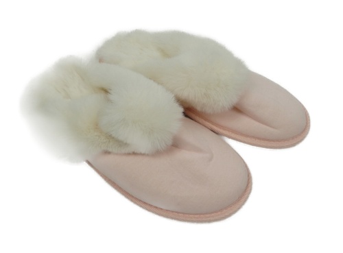 Nové - Dámské růžovo-bílé papuče s kožížkem vel. 38