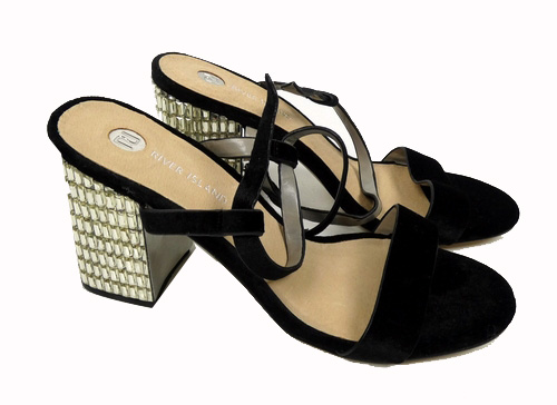 • Dámské černé sametové sandály na širokém podpatku River Island vel. 40