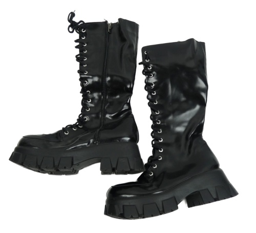 Dámské černé koženkové šněrovací kožačky Boohoo vel. 38