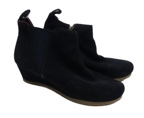 Dámské tmavomodré semišové kotníkové boty na klínku vel. 40
