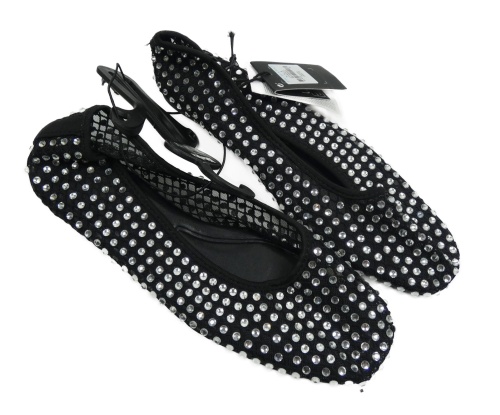 Nové - Dámské černé síťované baleríny s kamienkami Primark vel. 39