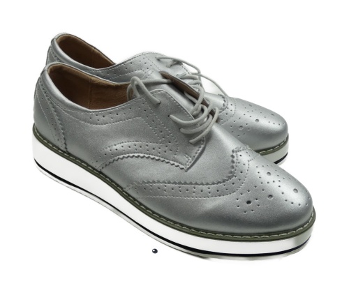 Dámské stříbrné koženkové boty na platformě vel. 43