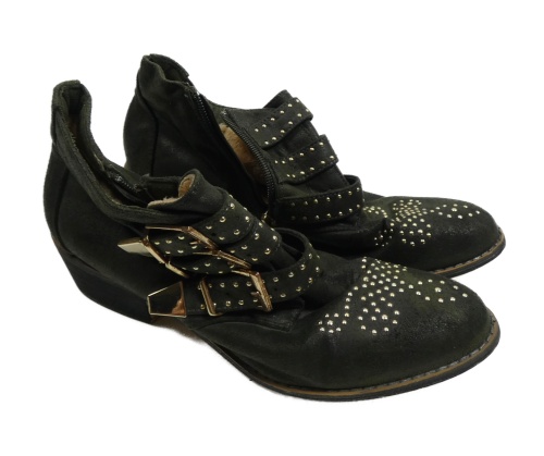 Dámske tmavosivé semišové členkové é topánky s cvočky vel. 40