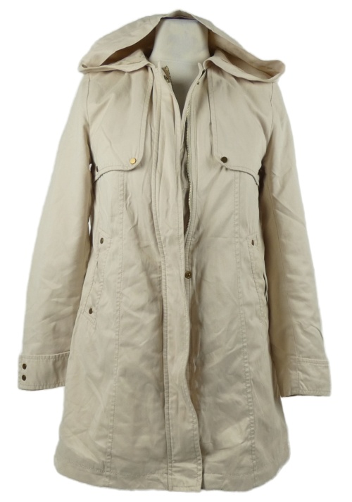 Dámsky béžový šušťákový jesenný kabát s kapucňou H&M