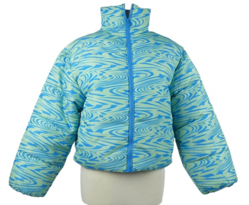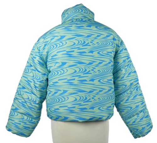 Nové - Dámska modro-zelená vzorovaná šušťáková zimná crop bunda MissGuided vel. 32