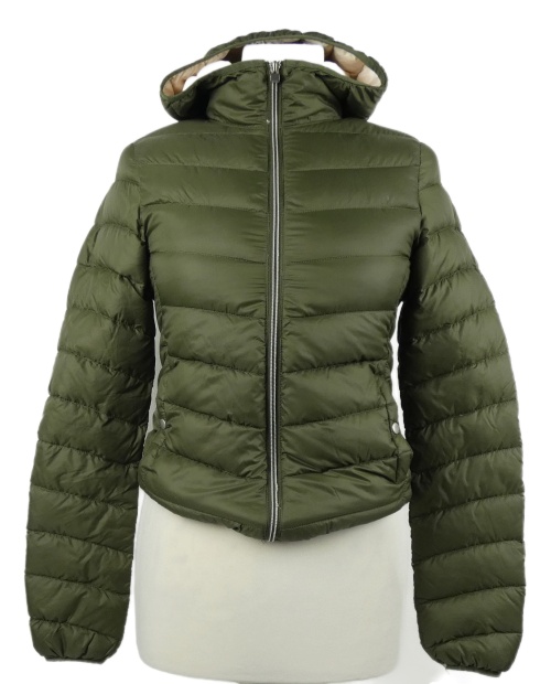 Dámska khaki šušťáková pod/zimní crop péřová bunda s kapucňou JBC
