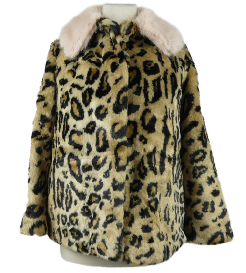 Dámsky béžovo-čierny vzorovaný kožušinový petite kabát s golierom Topshop vel. 32