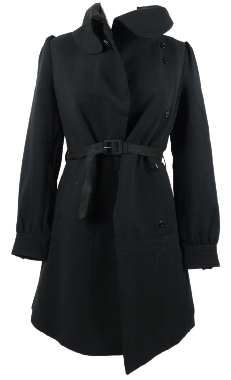 Dámsky čierny jesenný kabát s opaskom H&M