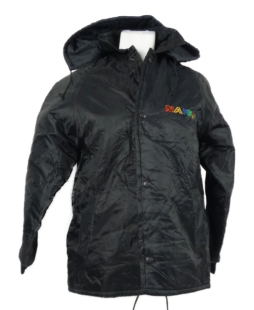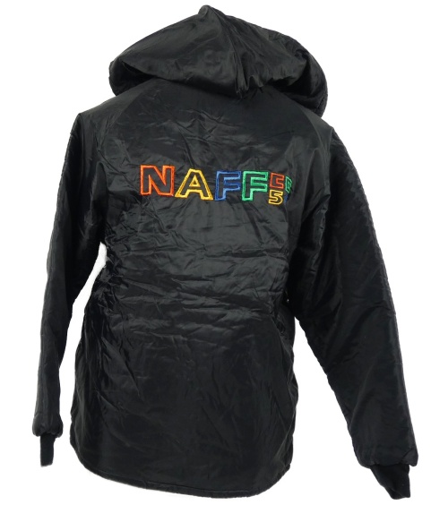 Dámska čierna šušťáková zateplená bunda s nápisom a kapucňou