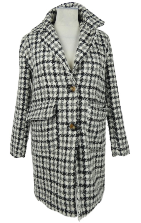 Dámsky čierno-sivo-biely vzorovaný flaušový kabát PrettyLittle Thing