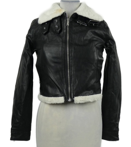 Dámsky čierny koženkový crop krivák s kožúškom Hollister