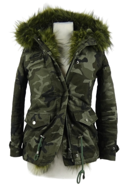 Dámska khaki army petite rifľová zateplená parka s kapucňou Glamorous
