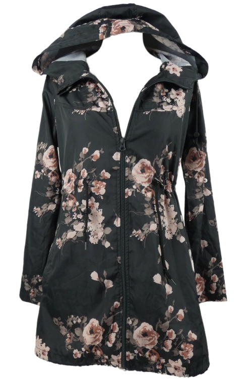Dámska čierna kvetovaná šušťáková parka s kapucňou Colloseum