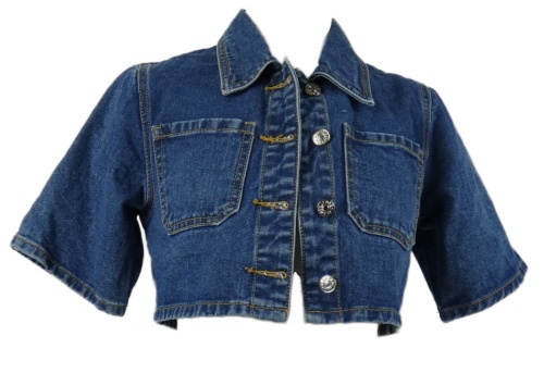 Dámska modrá rifľová crop bunda s krátkymi rukávy