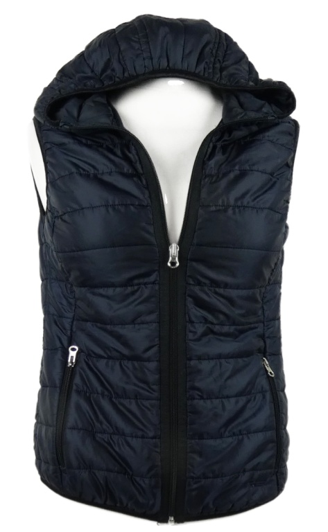 Dámska tmavomodrá šušťáková prešívaná zateplená vesta s kapucňou Ramax