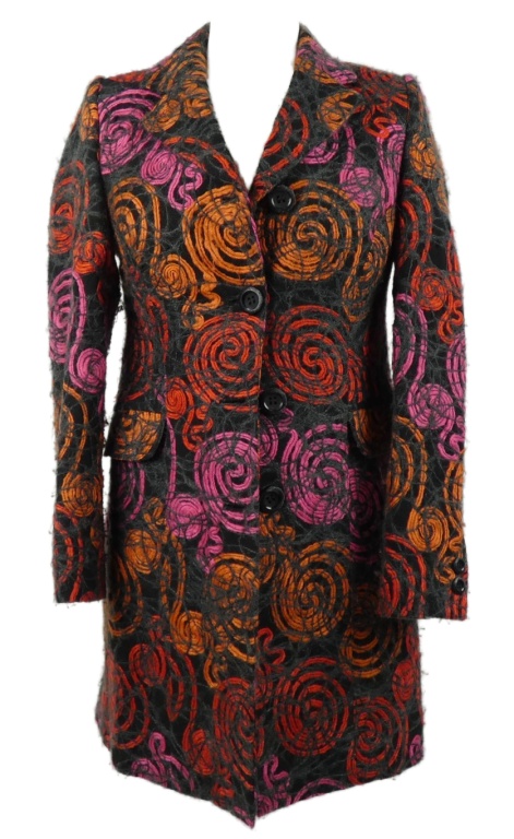 Dámsky čierno-oranžovo-ružový vzorovaný vlnený kabát