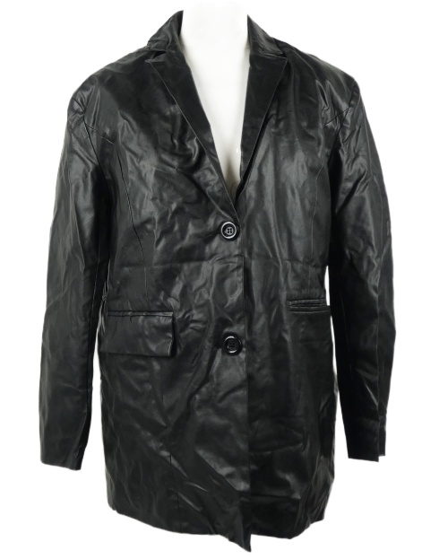 Dámsky čierny koženkový kabát PrettyLittle Thing